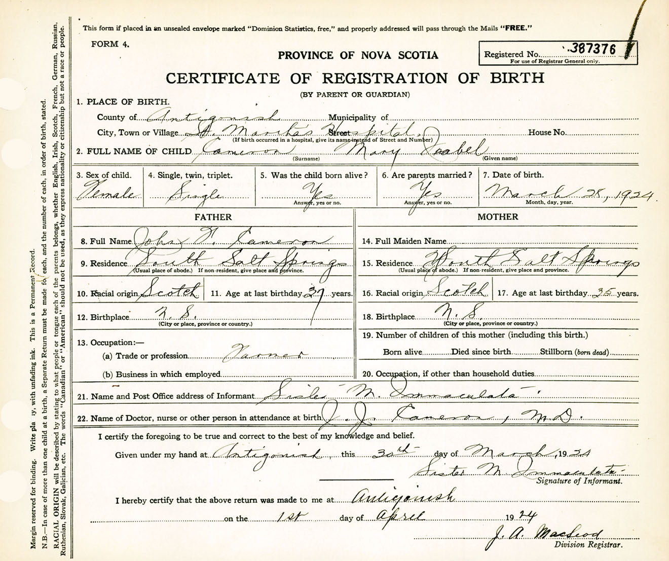 Nova Scotia Archives — https://archives.novascotia.ca/vital-statistics/birth/?ID=450481