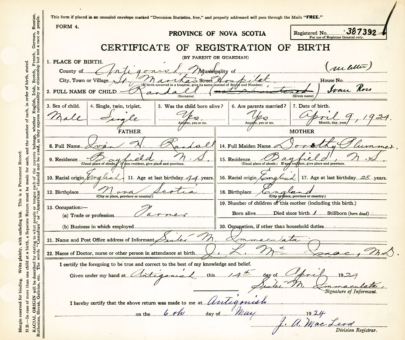 Nova Scotia Archives — https://archives.novascotia.ca/vital-statistics/birth/?ID=450497