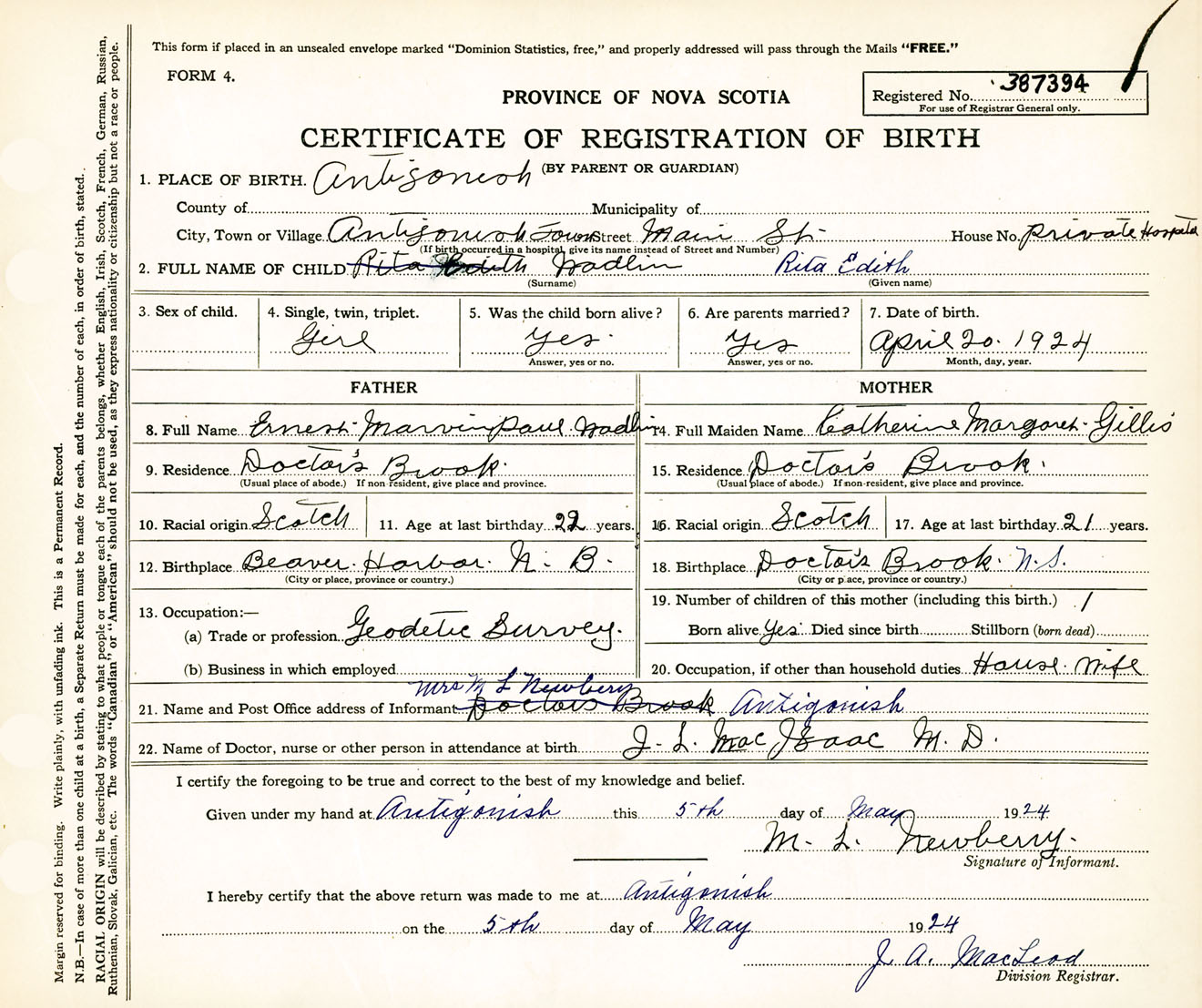 Nova Scotia Archives — https://archives.novascotia.ca/vital-statistics/birth/?ID=450499