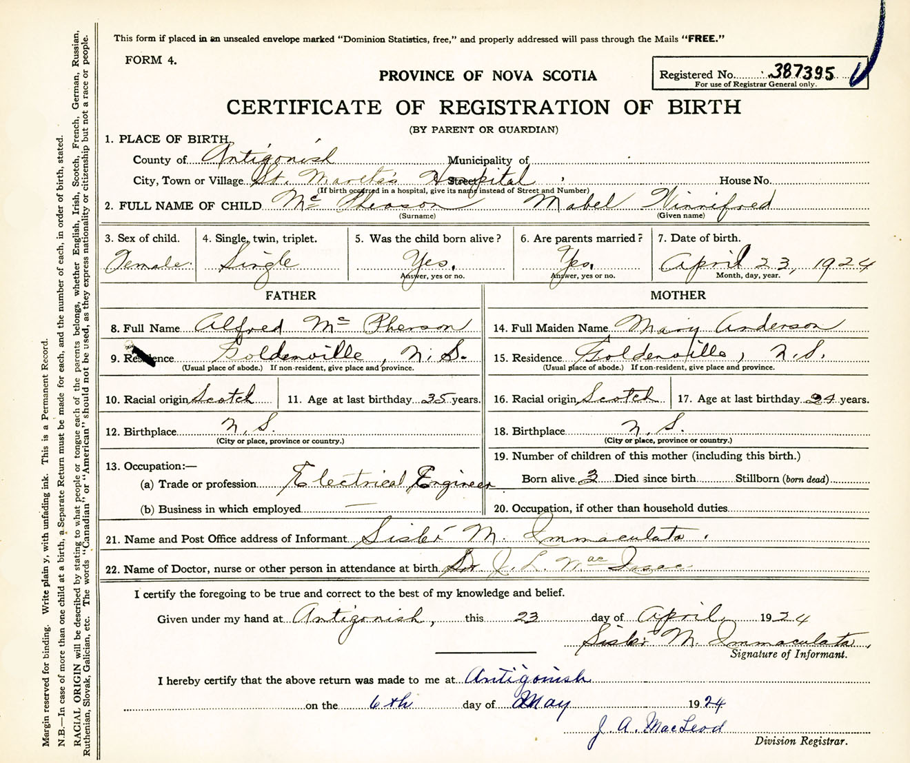 Nova Scotia Archives — https://archives.novascotia.ca/vital-statistics/birth/?ID=450500