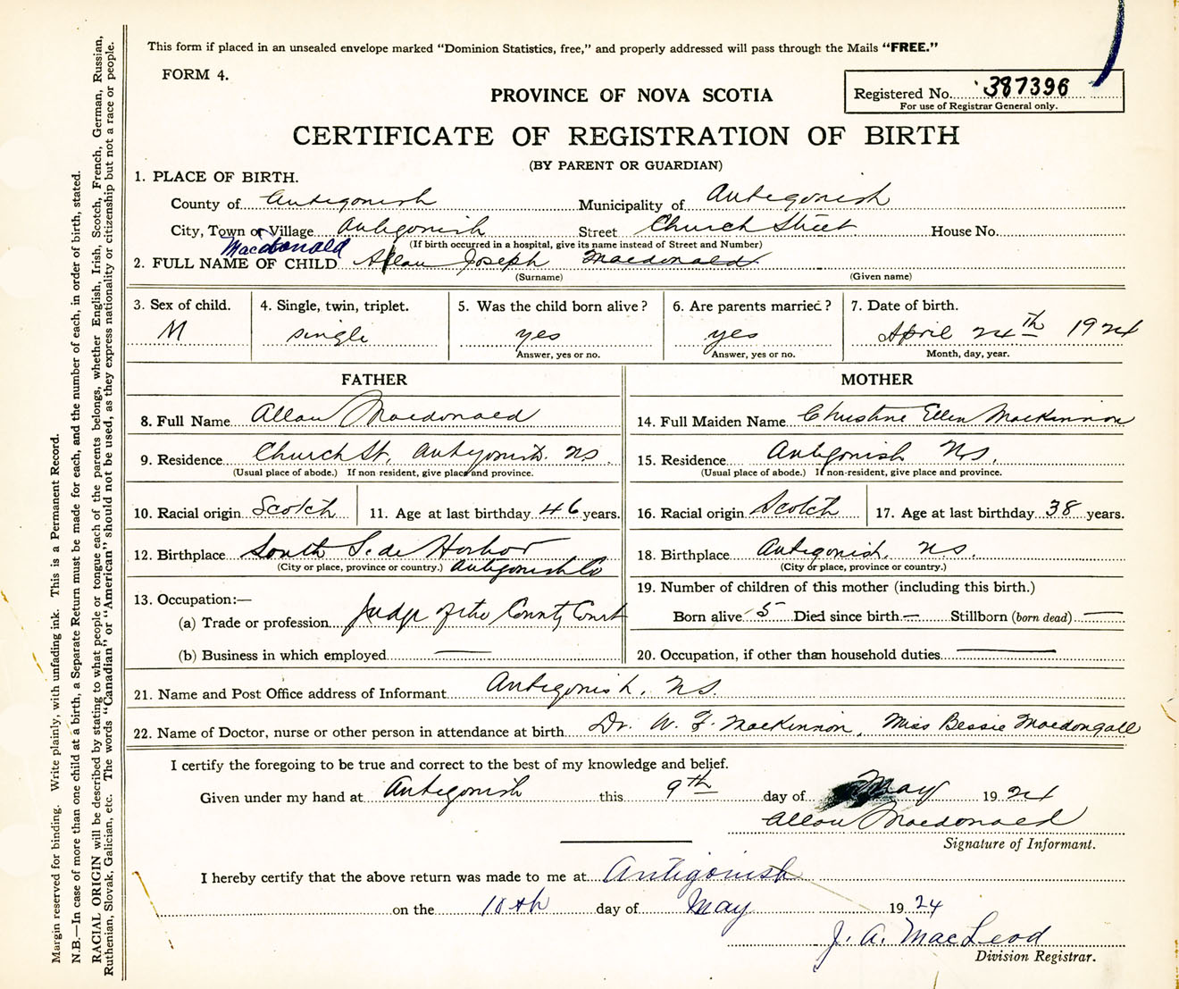 Nova Scotia Archives — https://archives.novascotia.ca/vital-statistics/birth/?ID=450501