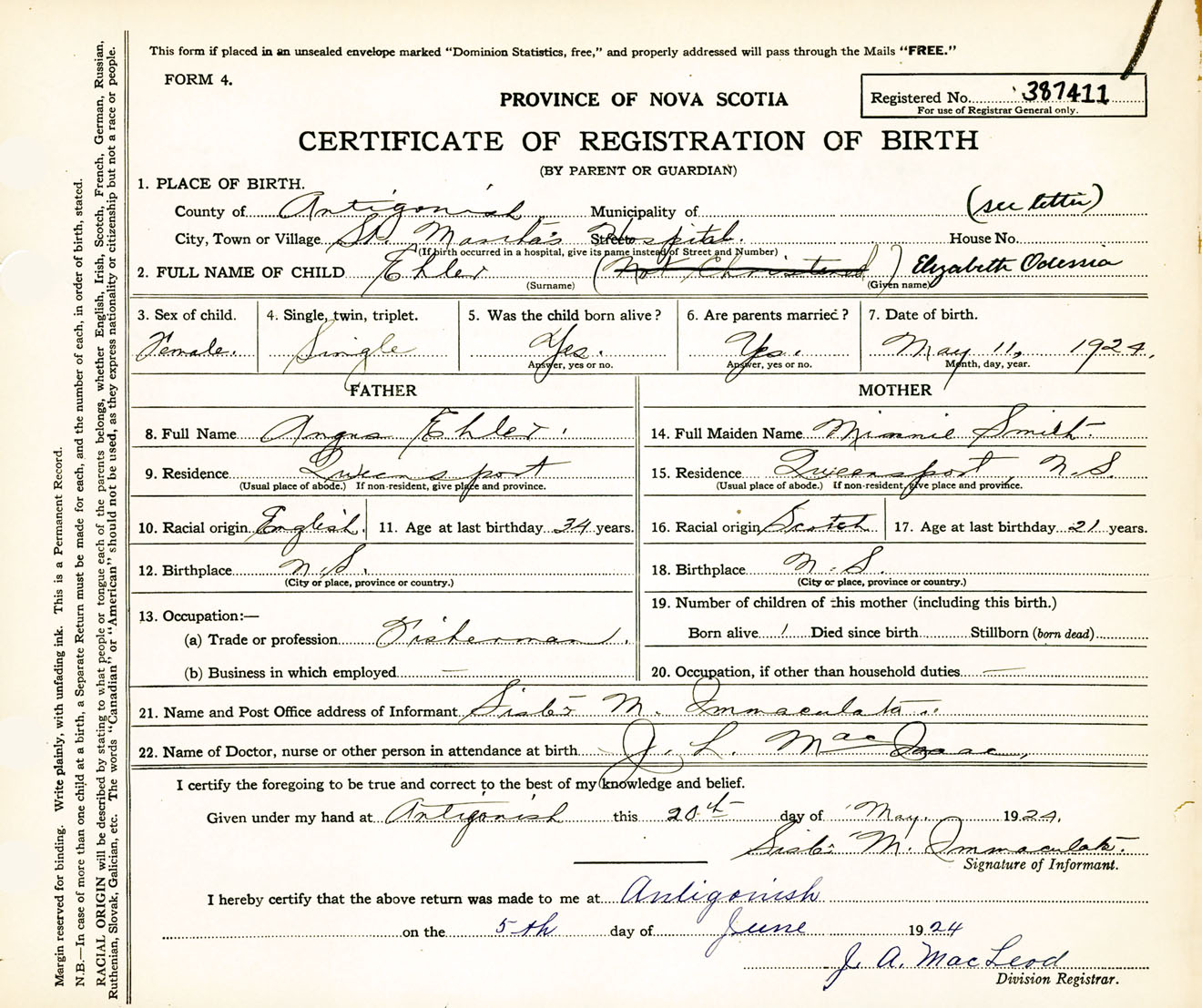 Nova Scotia Archives — https://archives.novascotia.ca/vital-statistics/birth/?ID=450516