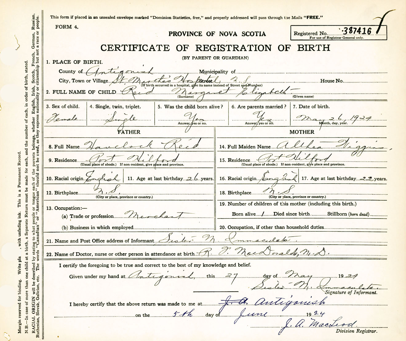 Nova Scotia Archives — https://archives.novascotia.ca/vital-statistics/birth/?ID=450521
