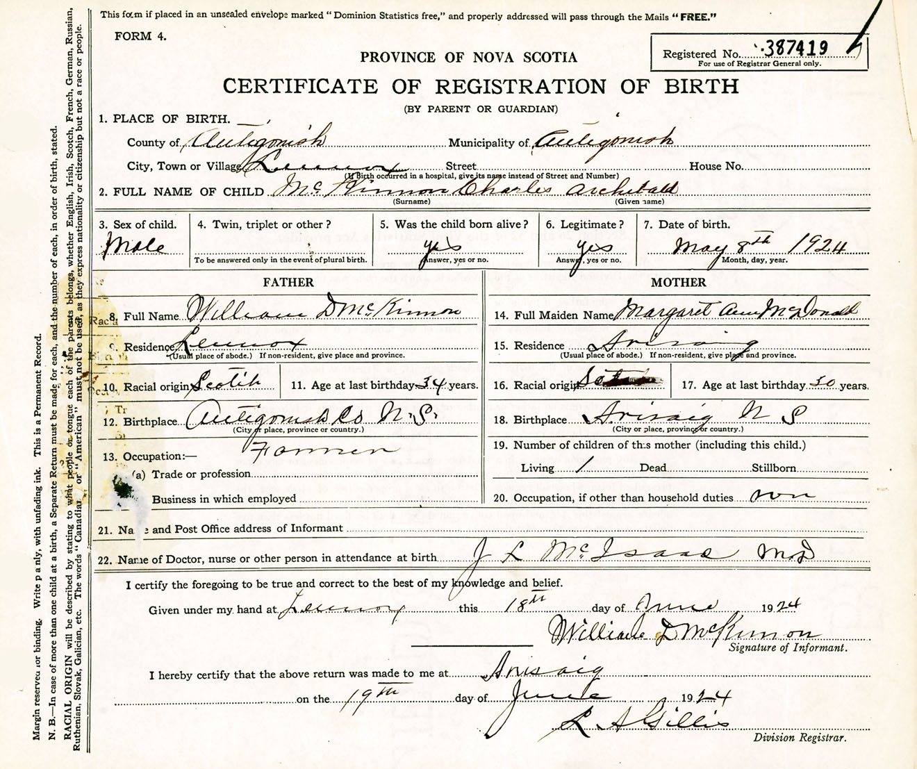 Nova Scotia Archives — https://archives.novascotia.ca/vital-statistics/birth/?ID=450524