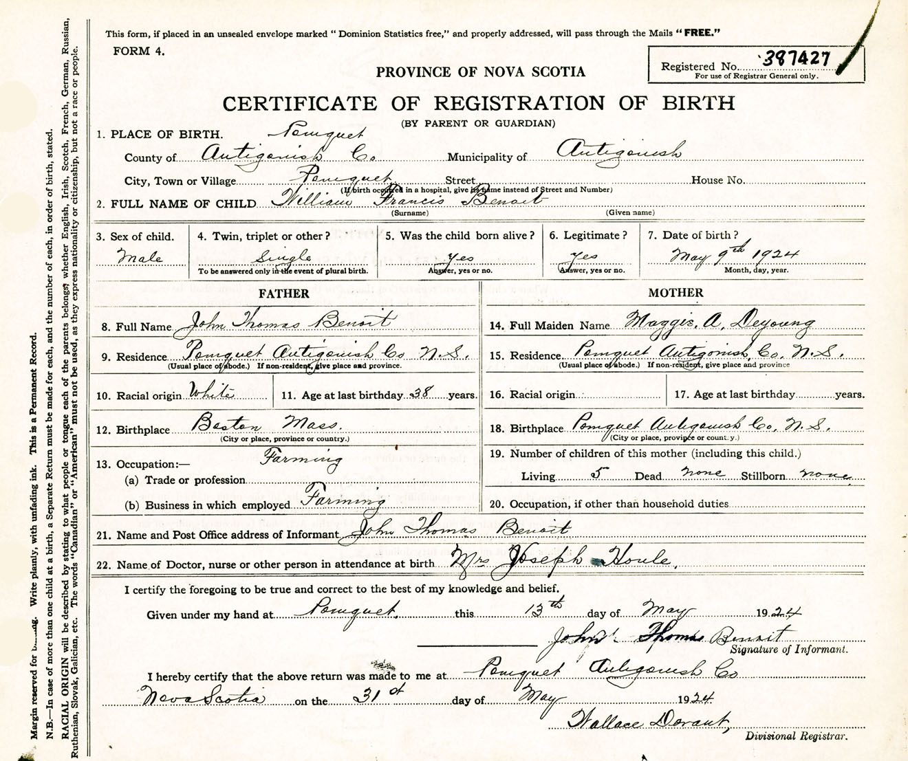 Male Birth Registration: Year: 1924 number: 38700427