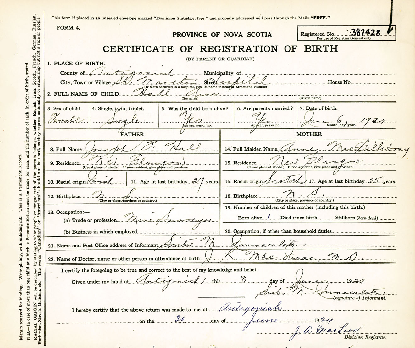Nova Scotia Archives — https://archives.novascotia.ca/vital-statistics/birth/?ID=450533
