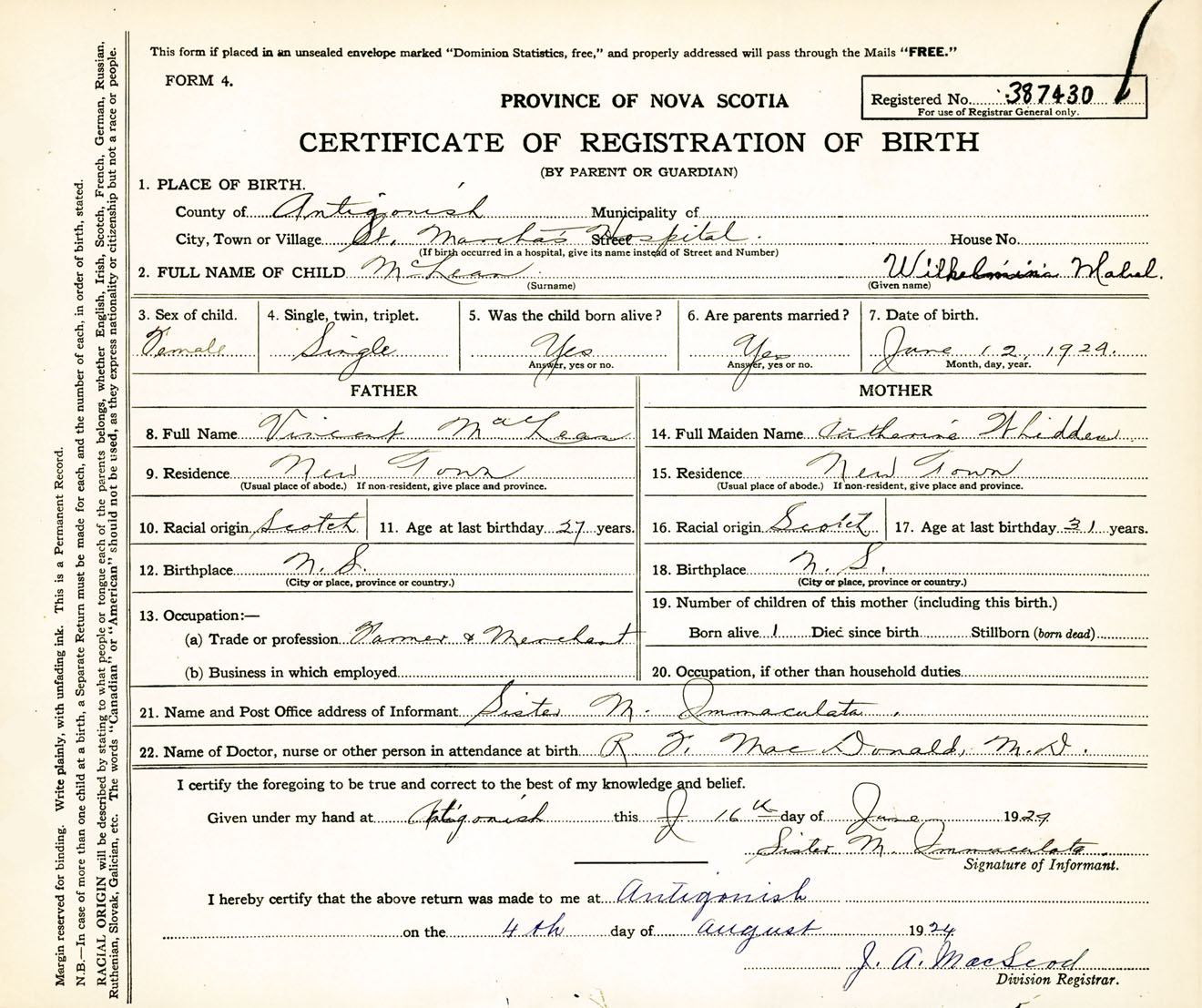 Nova Scotia Archives — https://archives.novascotia.ca/vital-statistics/birth/?ID=450535