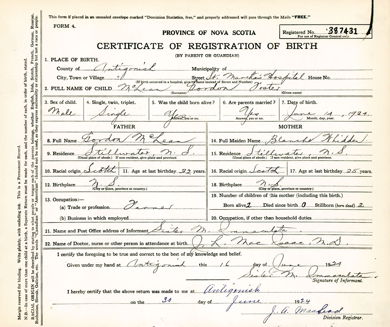 Nova Scotia Archives — https://archives.novascotia.ca/vital-statistics/birth/?ID=450536