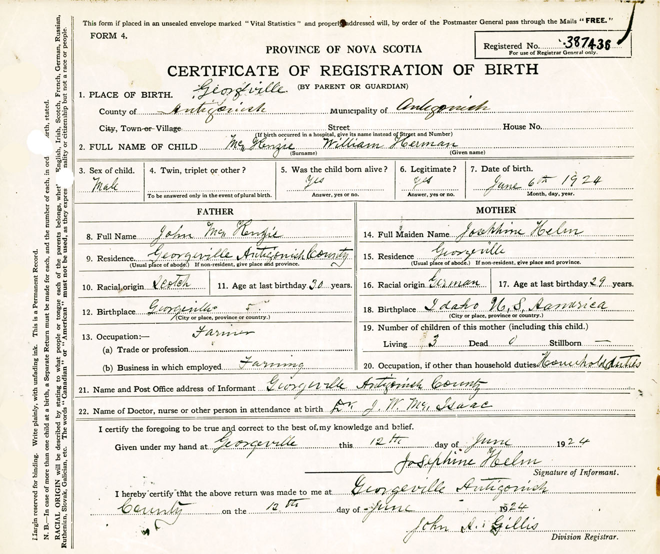 Male Birth Registration: Year: 1924 number: 38700436
