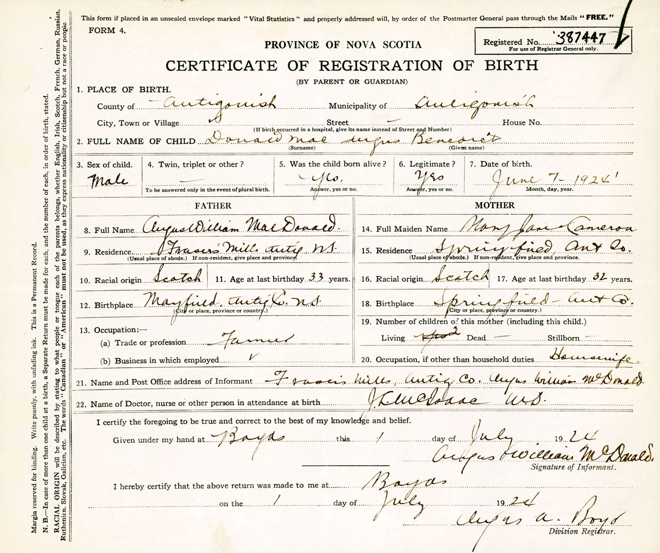 Male Birth Registration: Year: 1924 number: 38700447