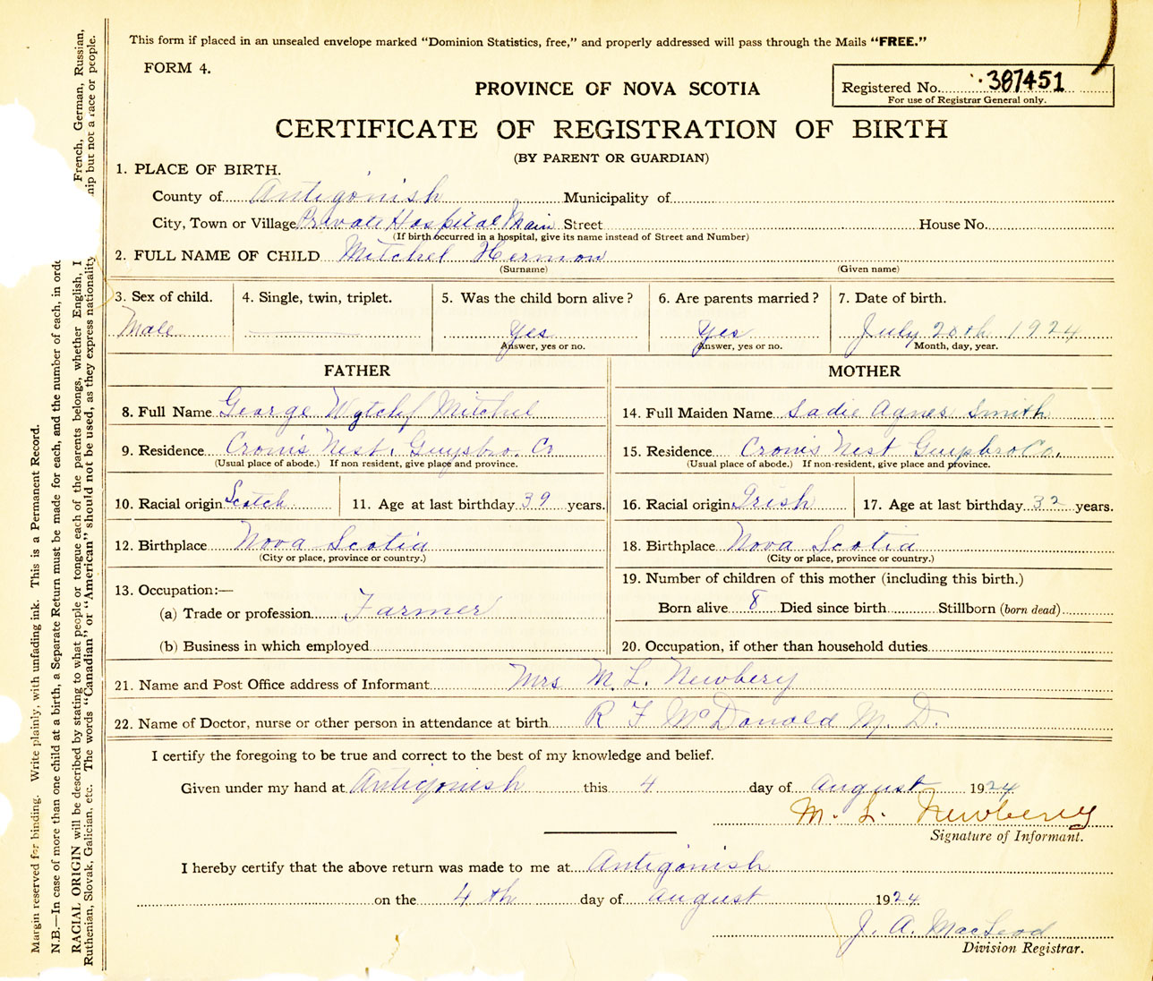 Nova Scotia Archives — https://archives.novascotia.ca/vital-statistics/birth/?ID=450556
