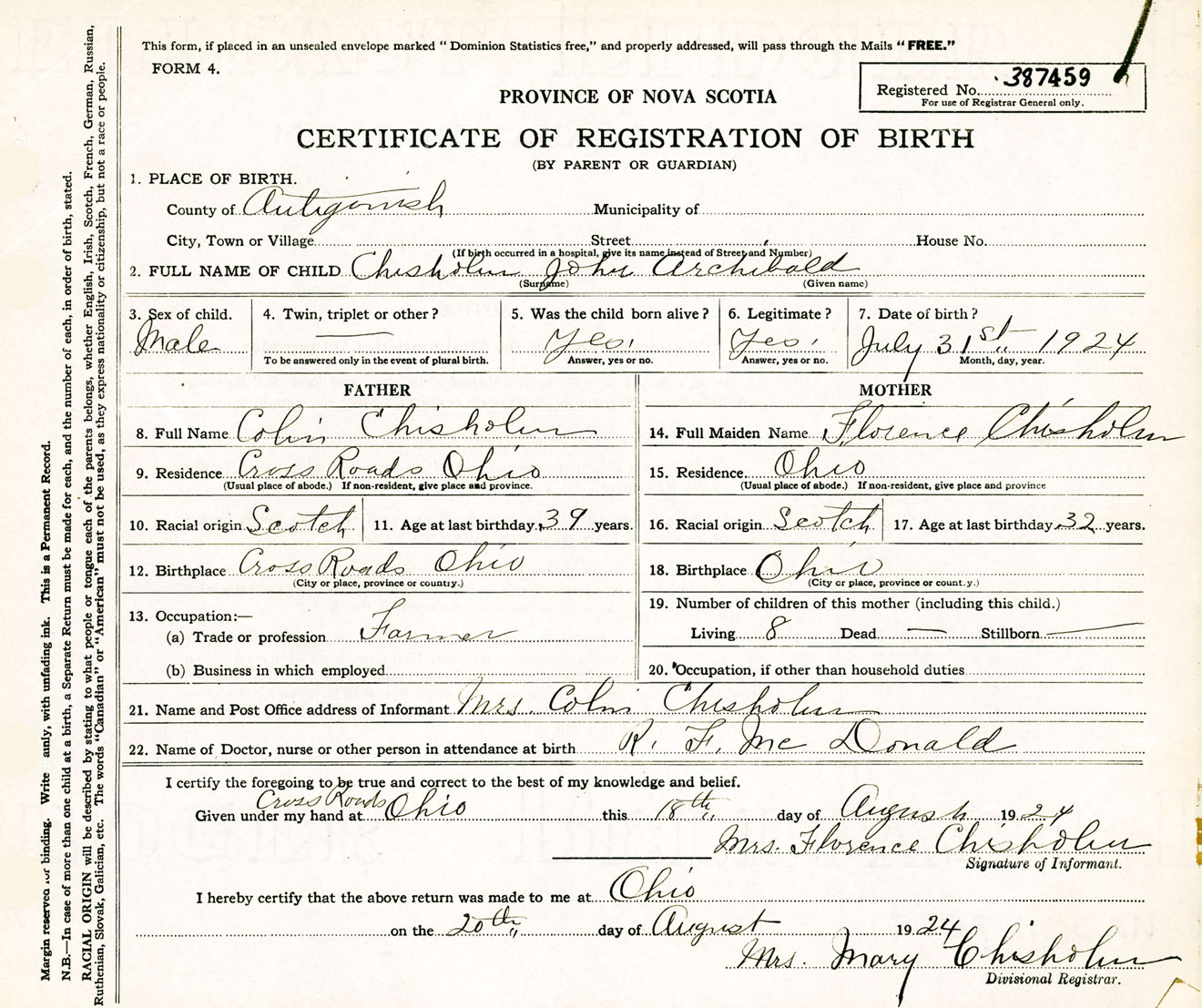 Male Birth Registration: Year: 1924 number: 38700459