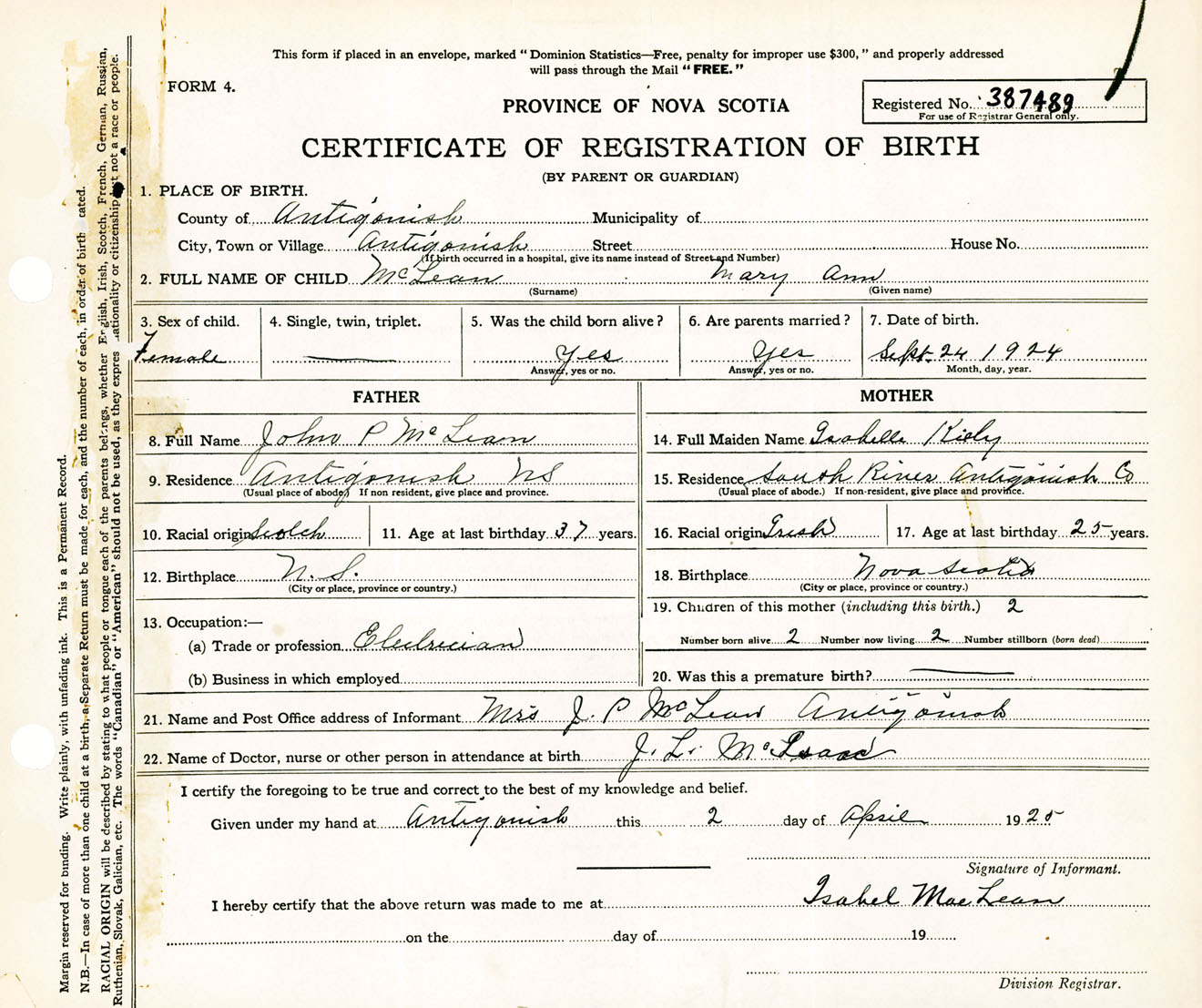Nova Scotia Archives — https://archives.novascotia.ca/vital-statistics/birth/?ID=450594
