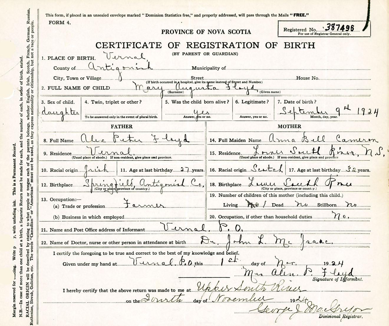 Nova Scotia Archives — https://archives.novascotia.ca/vital-statistics/birth/?ID=450601