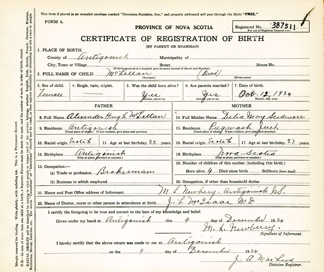Nova Scotia Archives — https://archives.novascotia.ca/vital-statistics/birth/?ID=450616