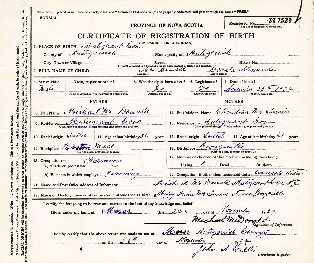 Male Birth Registration: Year: 1924 number: 38700529
