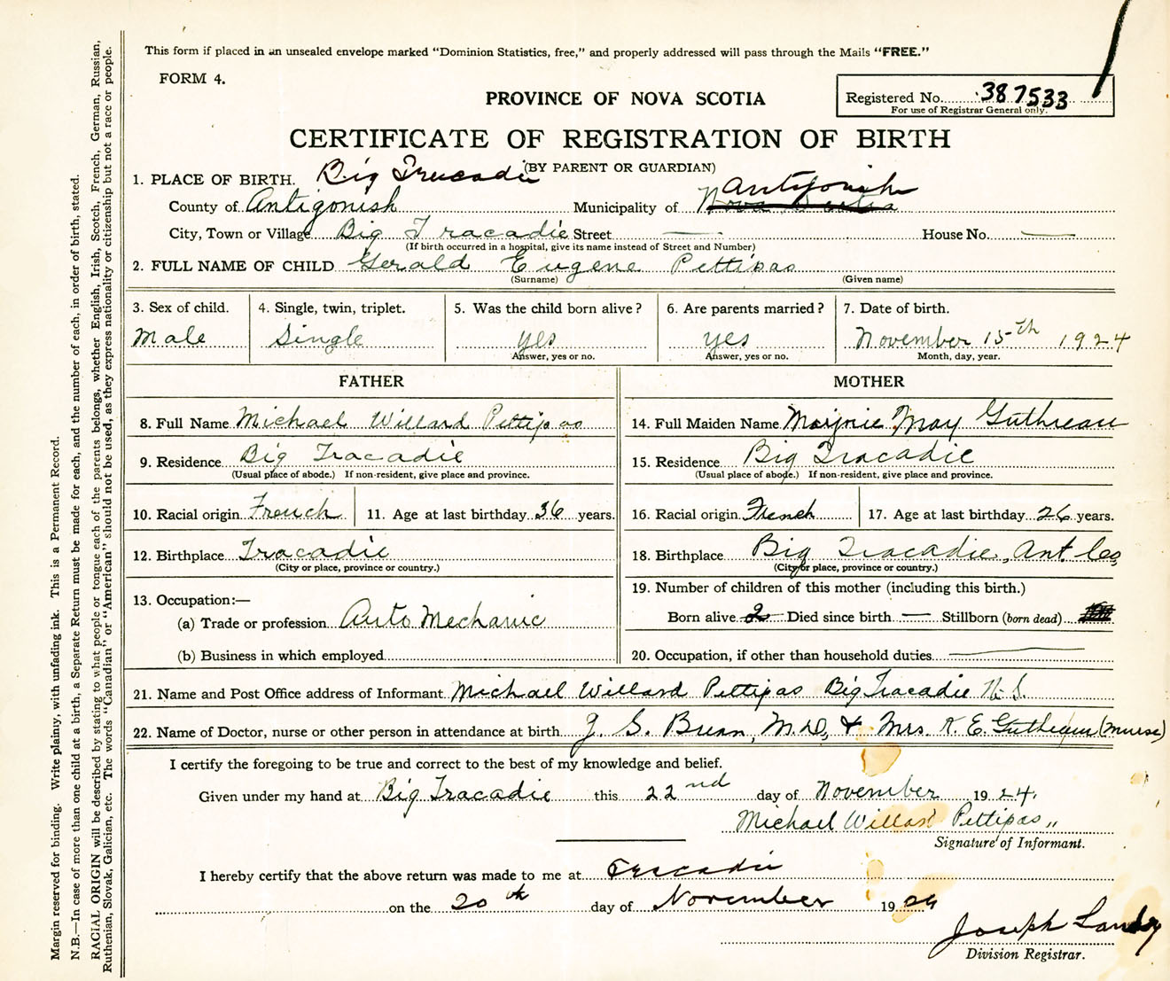 Male Birth Registration: Year: 1924 number: 38700533