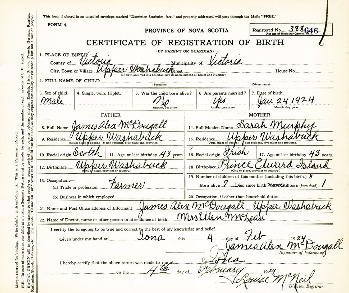 Male Birth Registration: Year: 1924 number: 38800646
