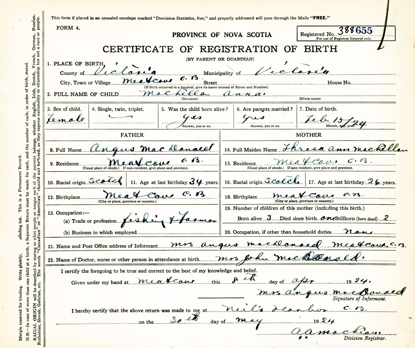 Nova Scotia Archives — https://archives.novascotia.ca/vital-statistics/birth/?ID=450689