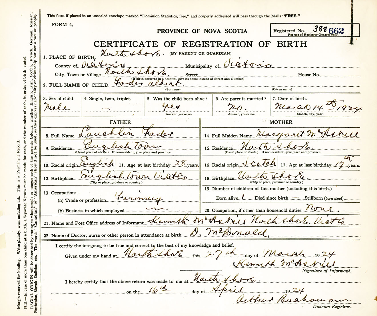 Male Birth Registration: Year: 1924 number: 38800662