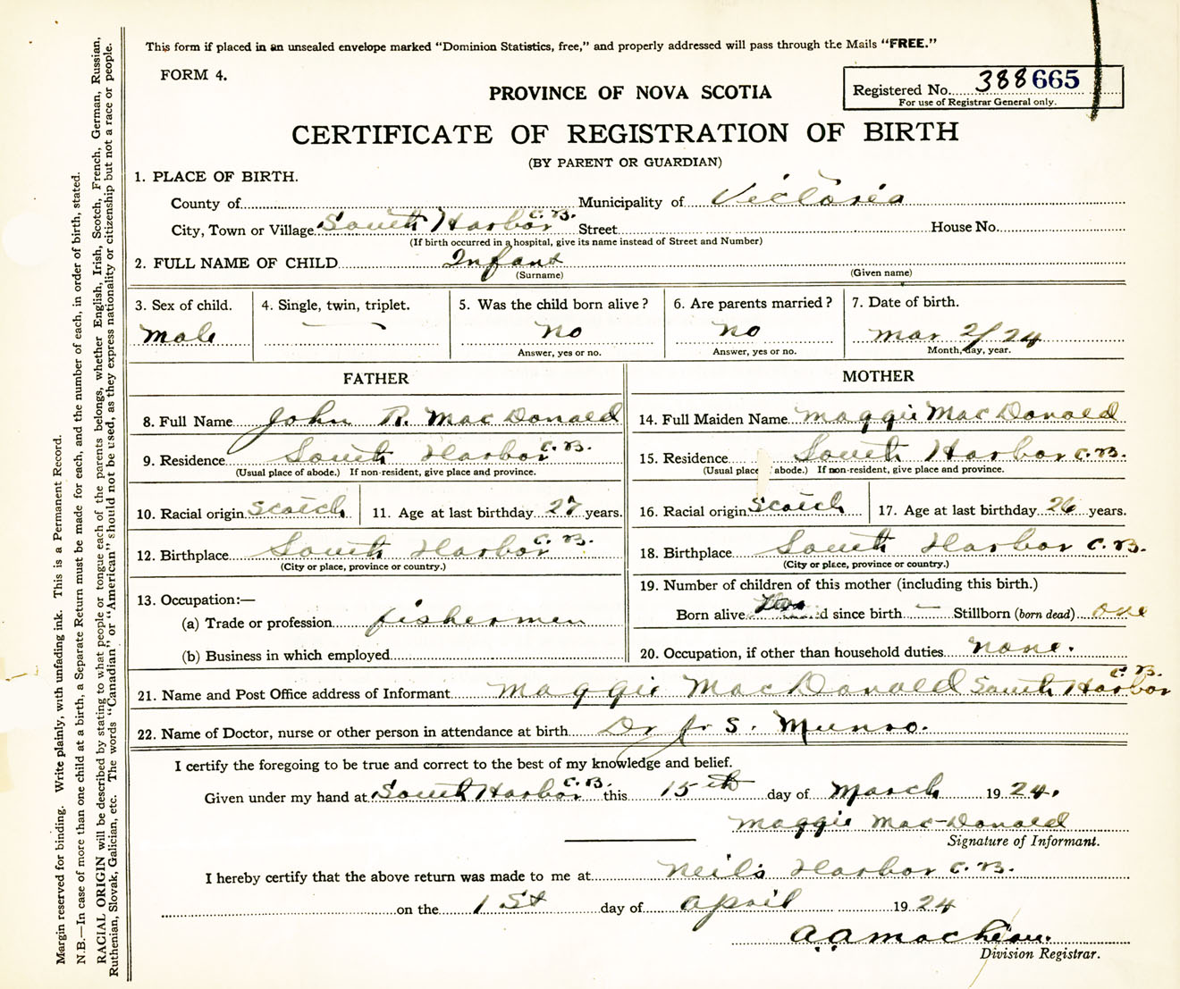 Male Birth Registration: Year: 1924 number: 38800665