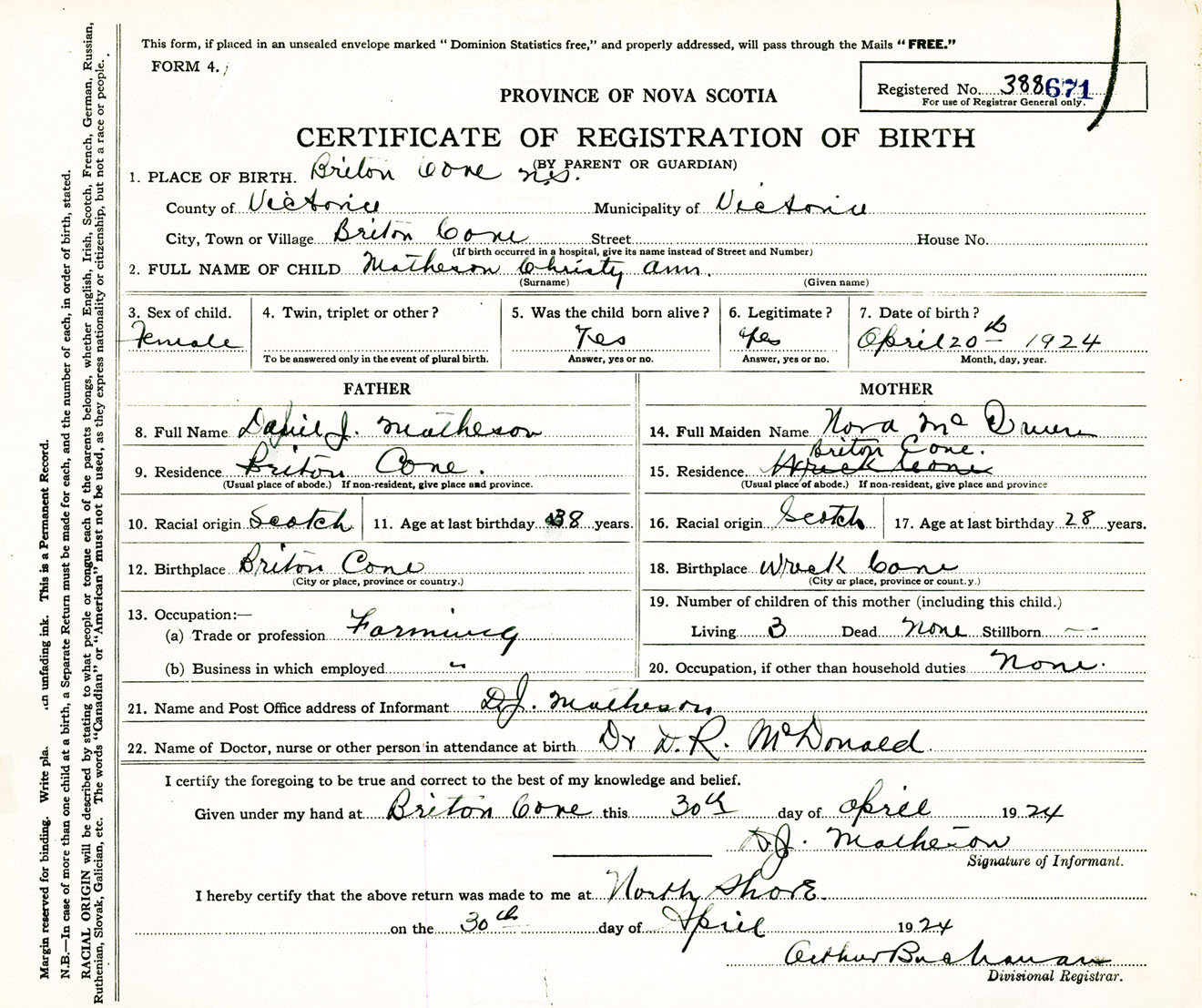 Nova Scotia Archives — https://archives.novascotia.ca/vital-statistics/birth/?ID=450705