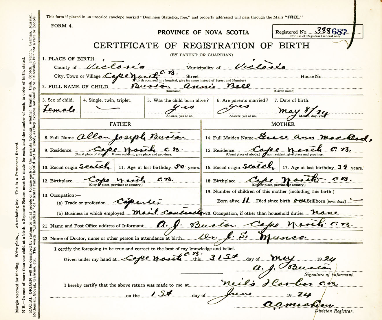 Nova Scotia Archives — https://archives.novascotia.ca/vital-statistics/birth/?ID=450721