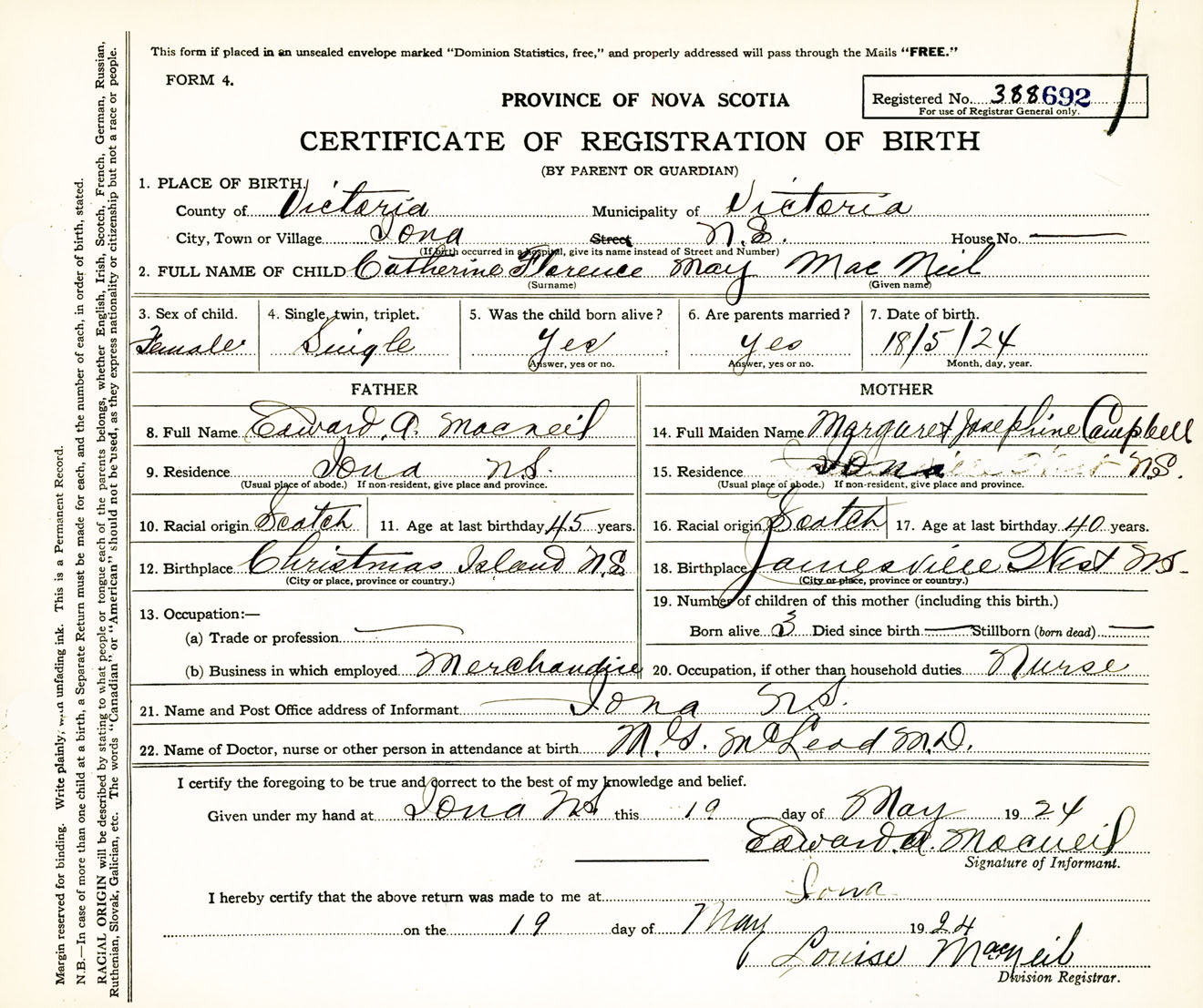 Nova Scotia Archives — https://archives.novascotia.ca/vital-statistics/birth/?ID=450726
