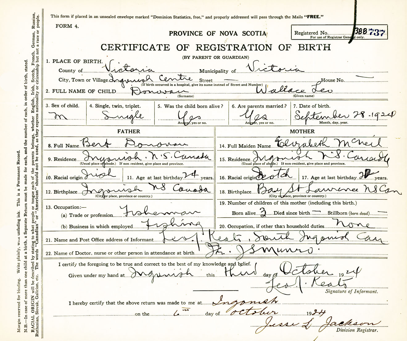 Male Birth Registration: Year: 1924 number: 38800737
