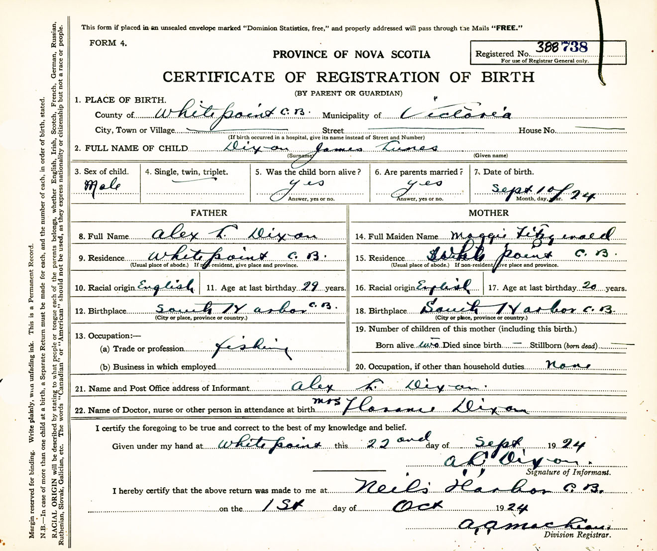 Male Birth Registration: Year: 1924 number: 38800738