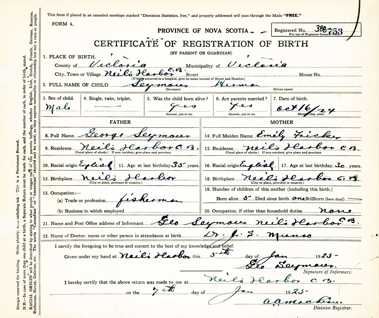 Male Birth Registration: Year: 1924 number: 38800753