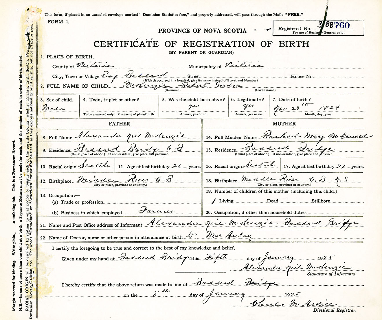 Male Birth Registration: Year: 1924 number: 38800760