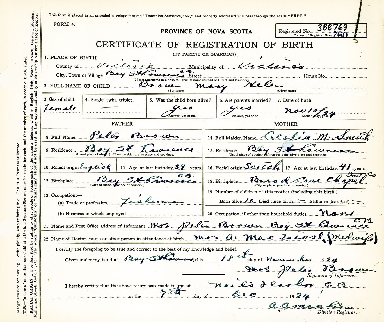 Female Birth Registration: Year: 1924 number: 38800769
