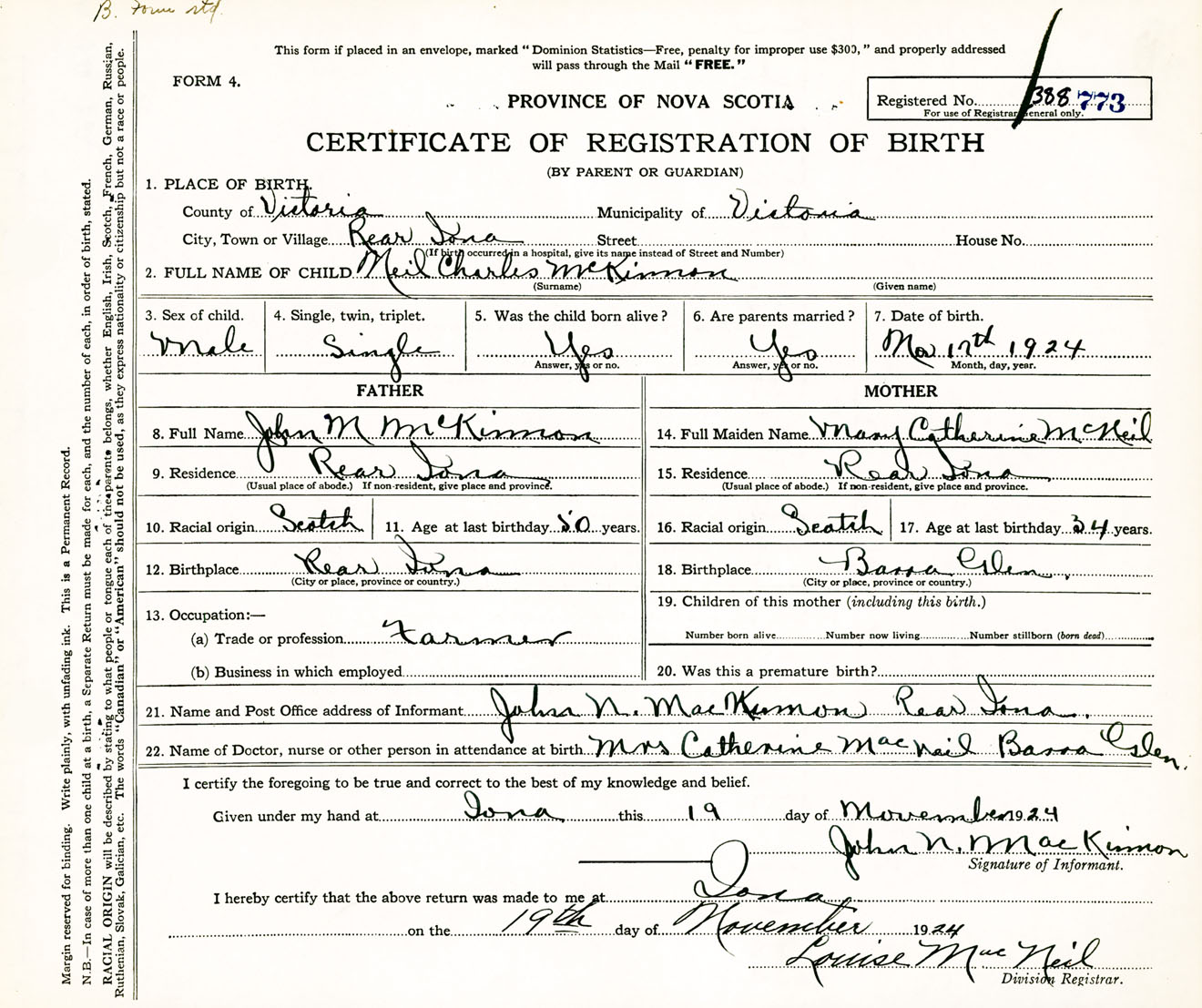 Male Birth Registration: Year: 1924 number: 38800773