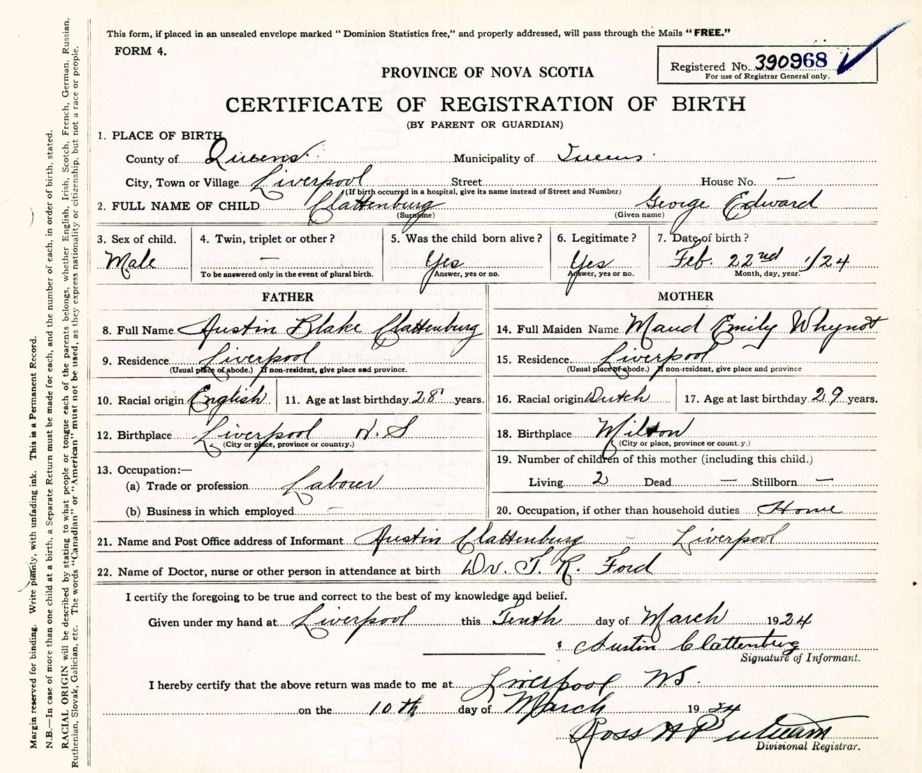 Male Birth Registration: Year: 1924 number: 39000968