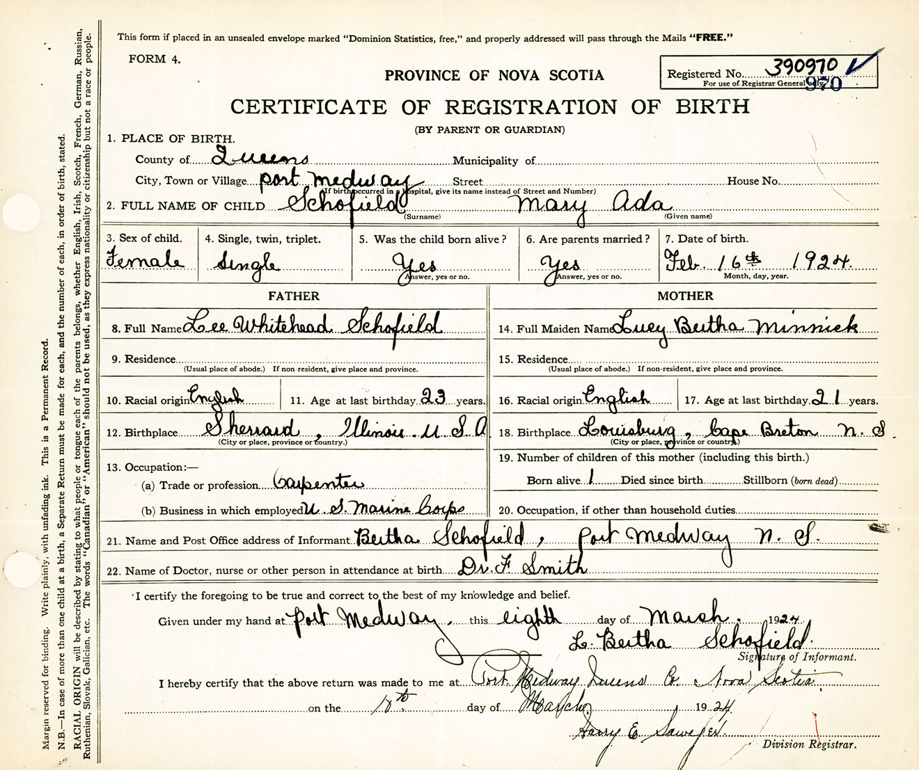Female Birth Registration: Year: 1924 number: 39000970