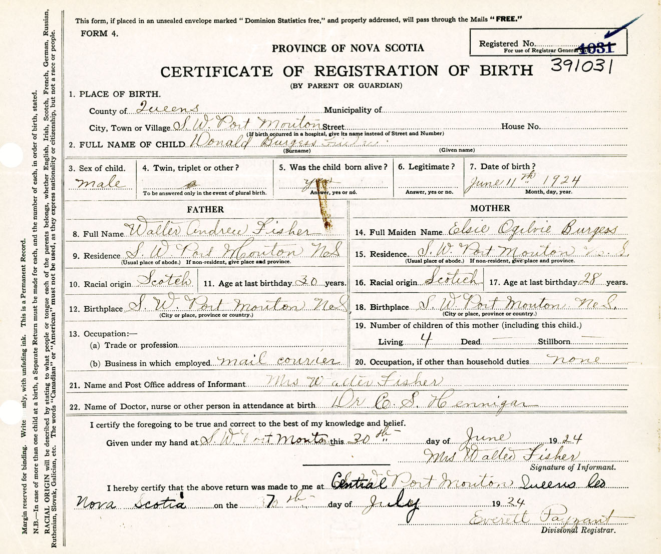 Male Birth Registration: Year: 1924 number: 39100031