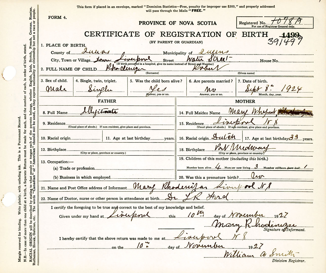 Male Birth Registration: Year: 1924 number: 39100499