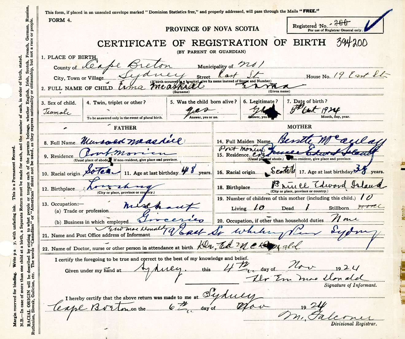 Nova Scotia Archives — https://archives.novascotia.ca/vital-statistics/birth/?ID=451229