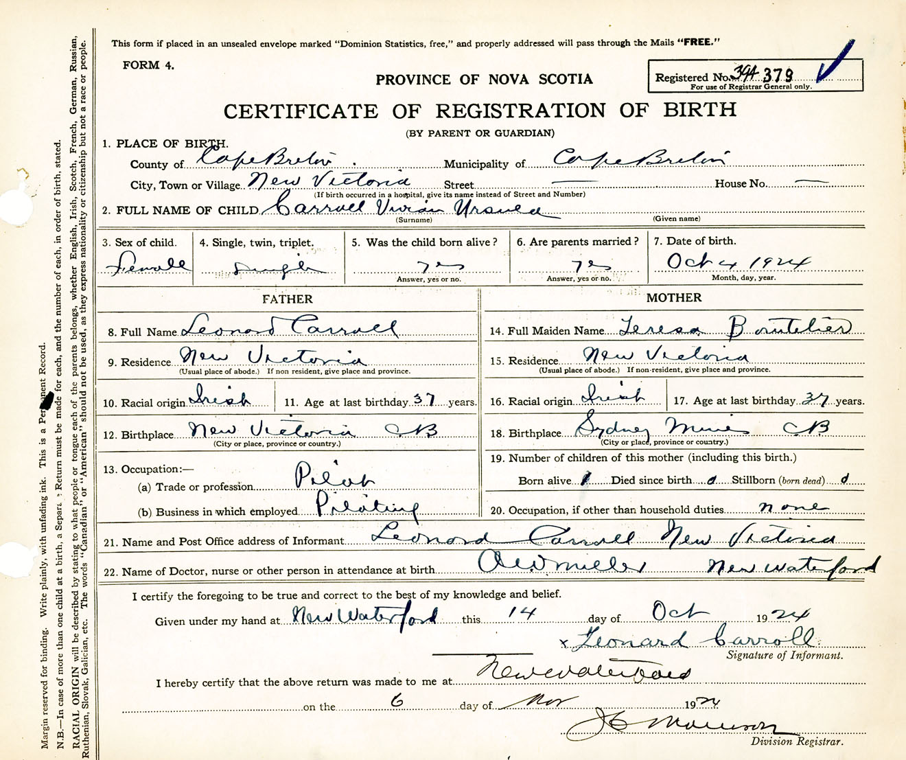 Nova Scotia Archives — https://archives.novascotia.ca/vital-statistics/birth/?ID=451407