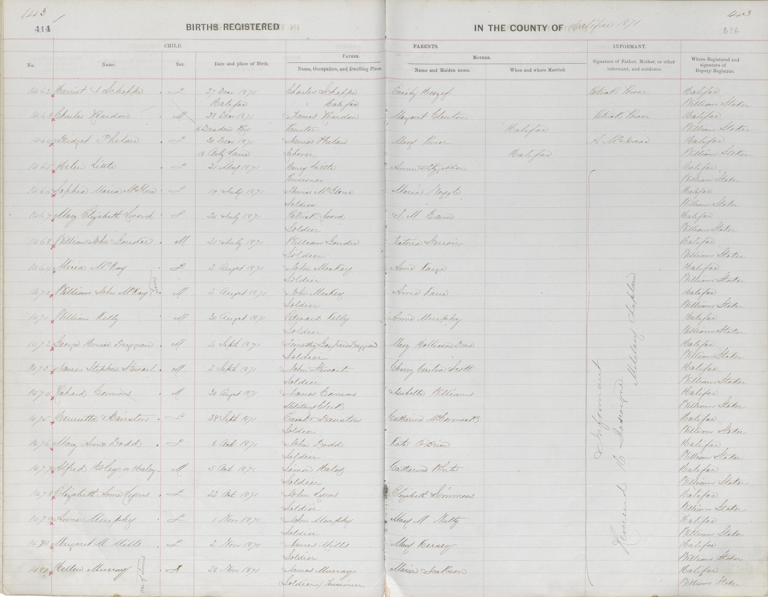 Birth Registration: Year: 1871 book: 1810 page: 143 number: 1462