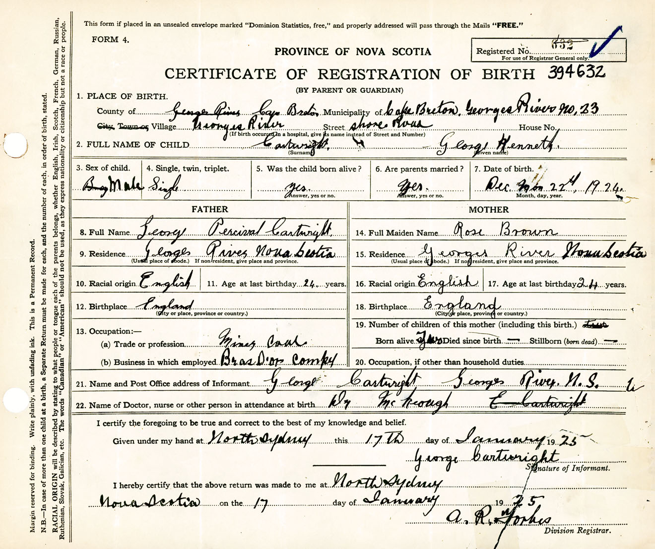 Male Birth Registration: Year: 1924 number: 39400632