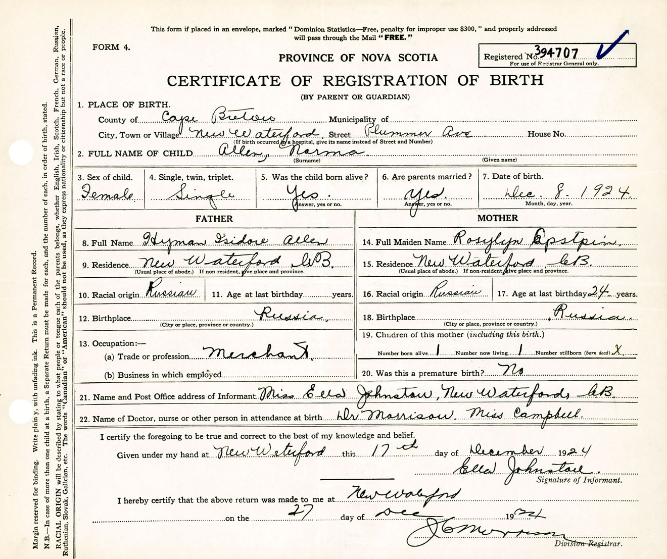 Nova Scotia Archives — https://archives.novascotia.ca/vital-statistics/birth/?ID=451735