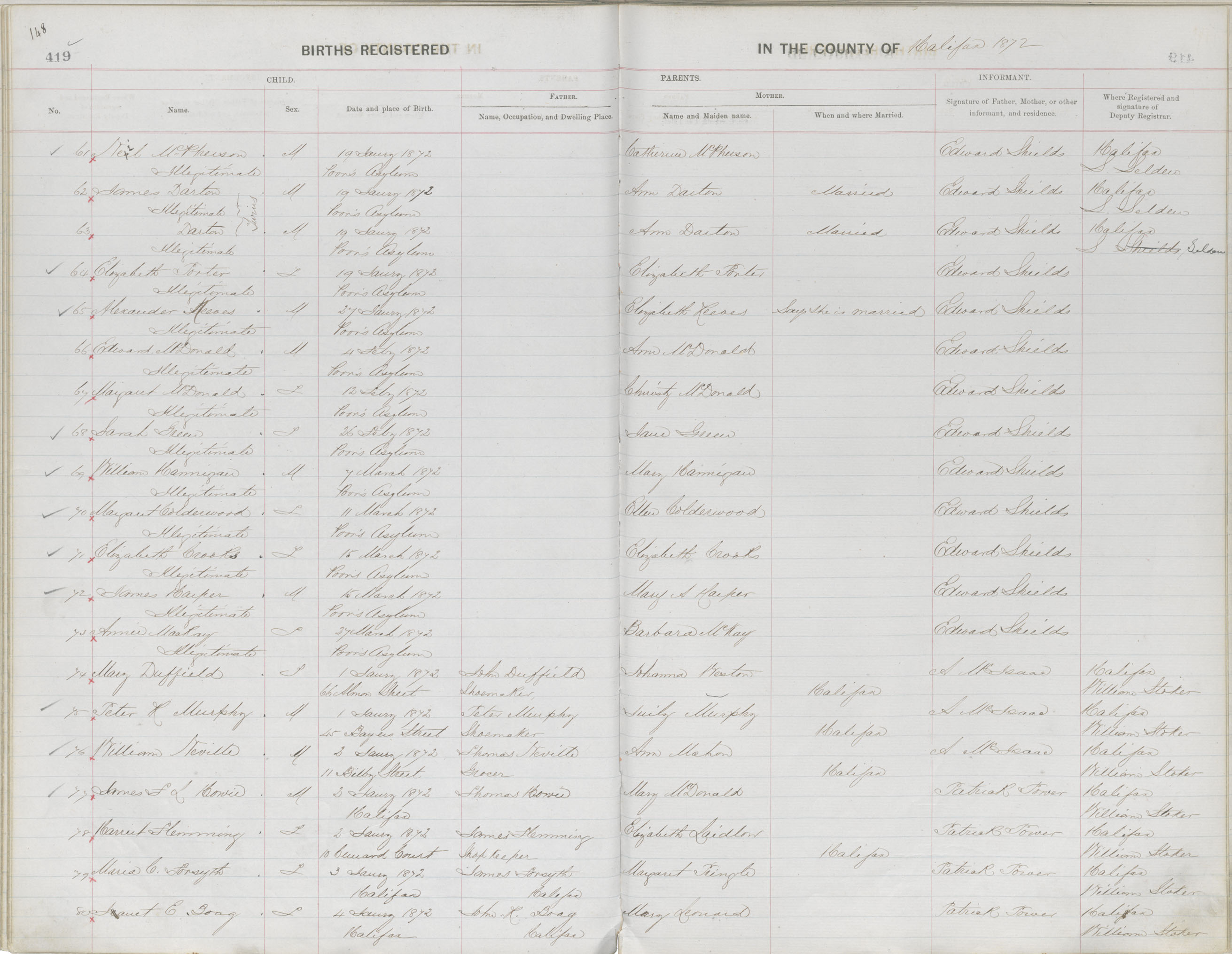 Birth Registration: Year: 1872 book: 1810 page: 148 number: 61
