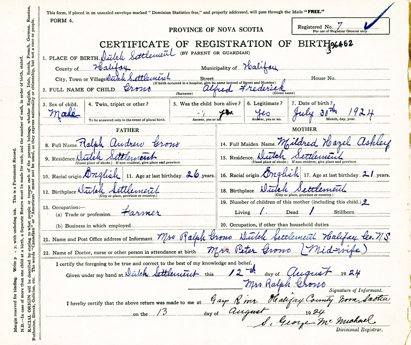 Male Birth Registration: Year: 1924 number: 39600462