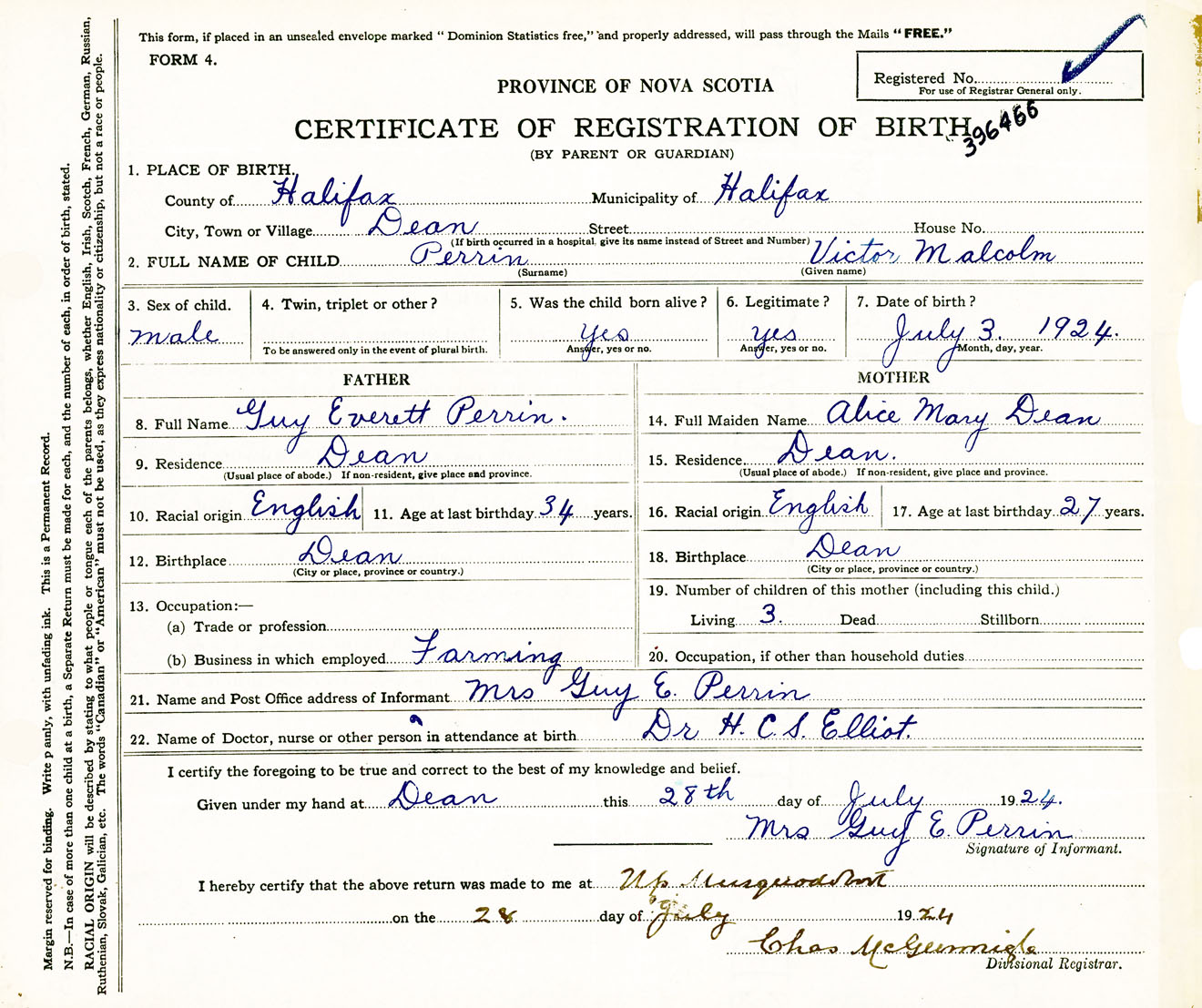 Male Birth Registration: Year: 1924 number: 39600466
