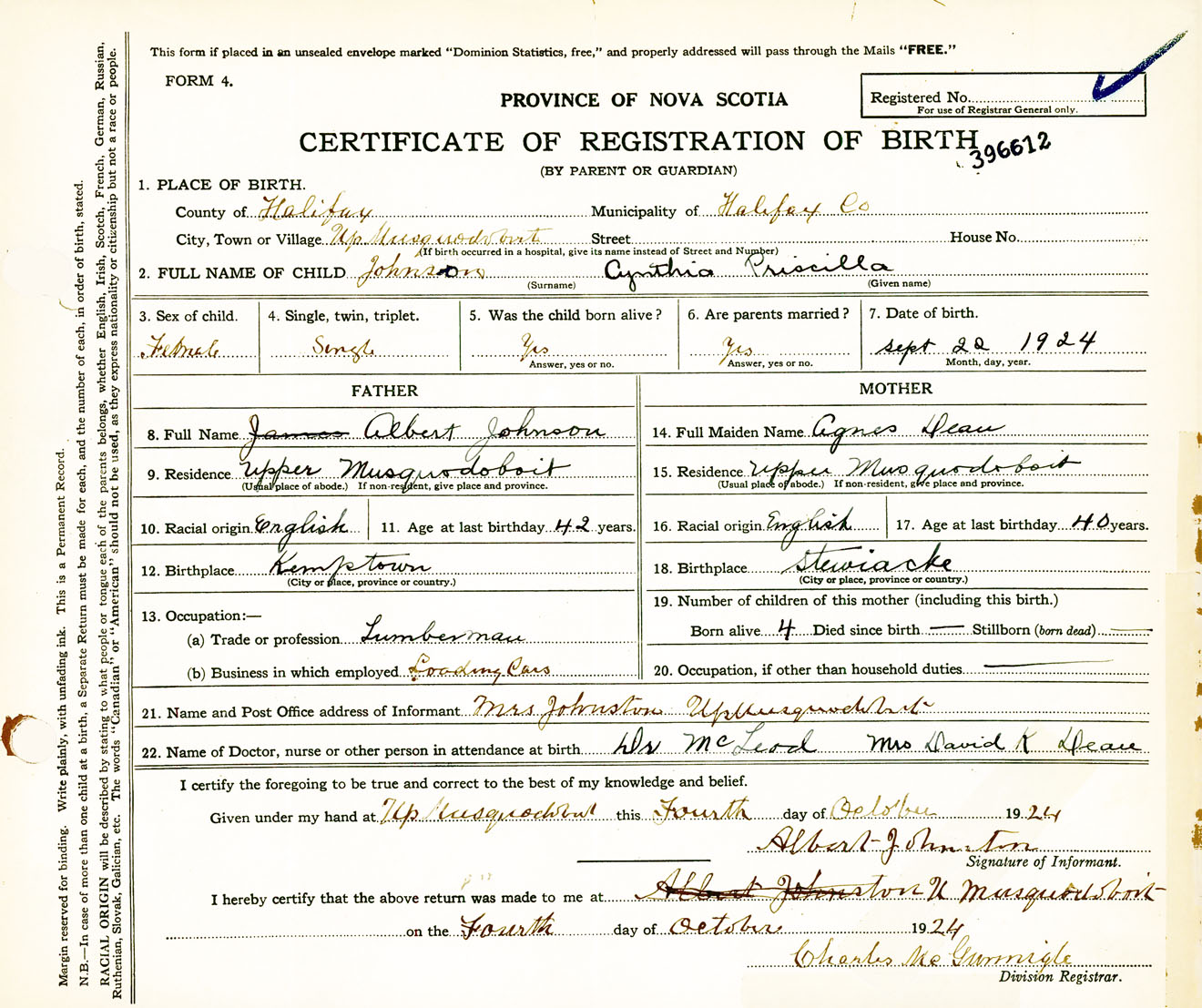 Nova Scotia Archives — https://archives.novascotia.ca/vital-statistics/birth/?ID=452416