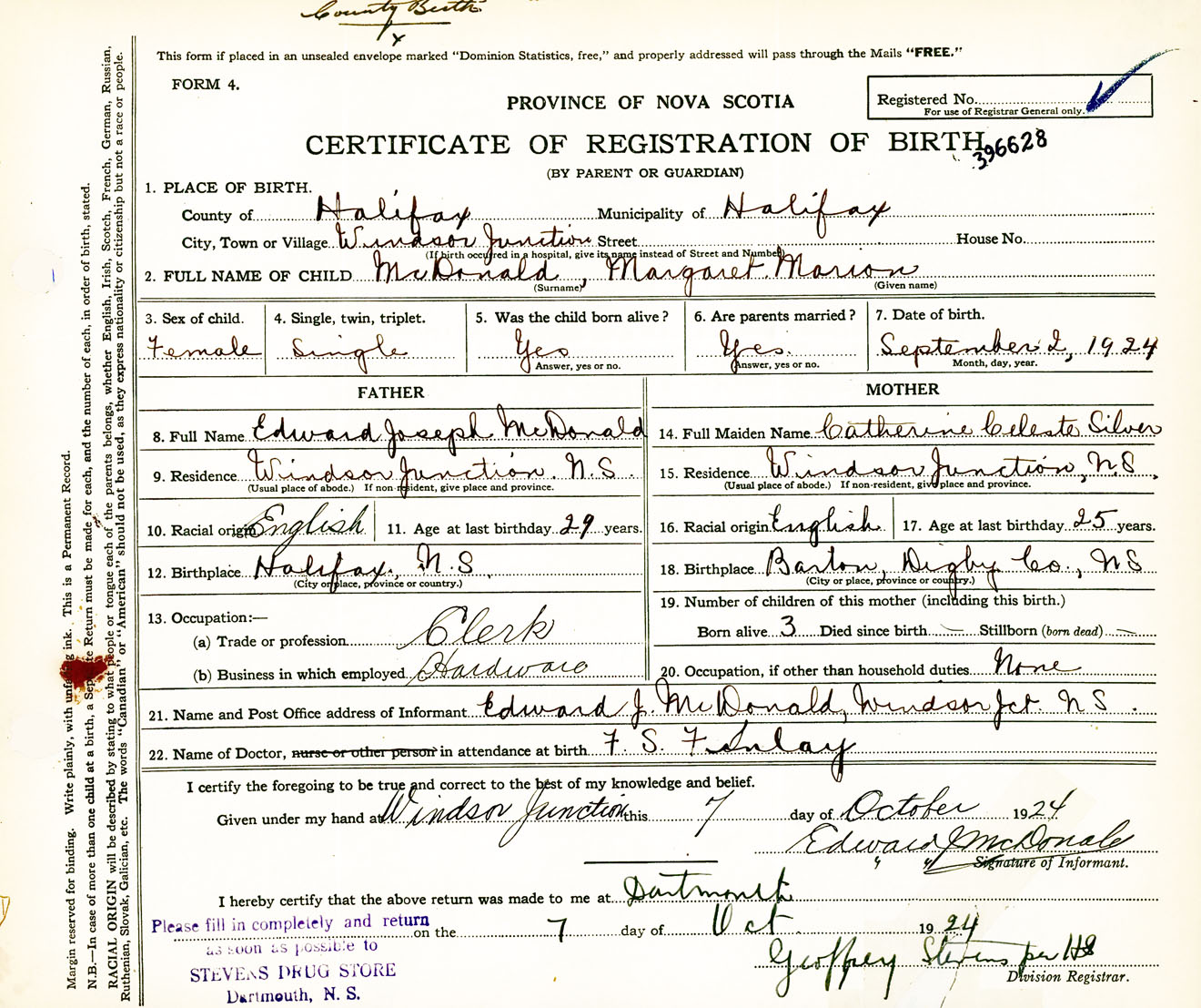 Female Birth Registration: Year: 1924 number: 39600628