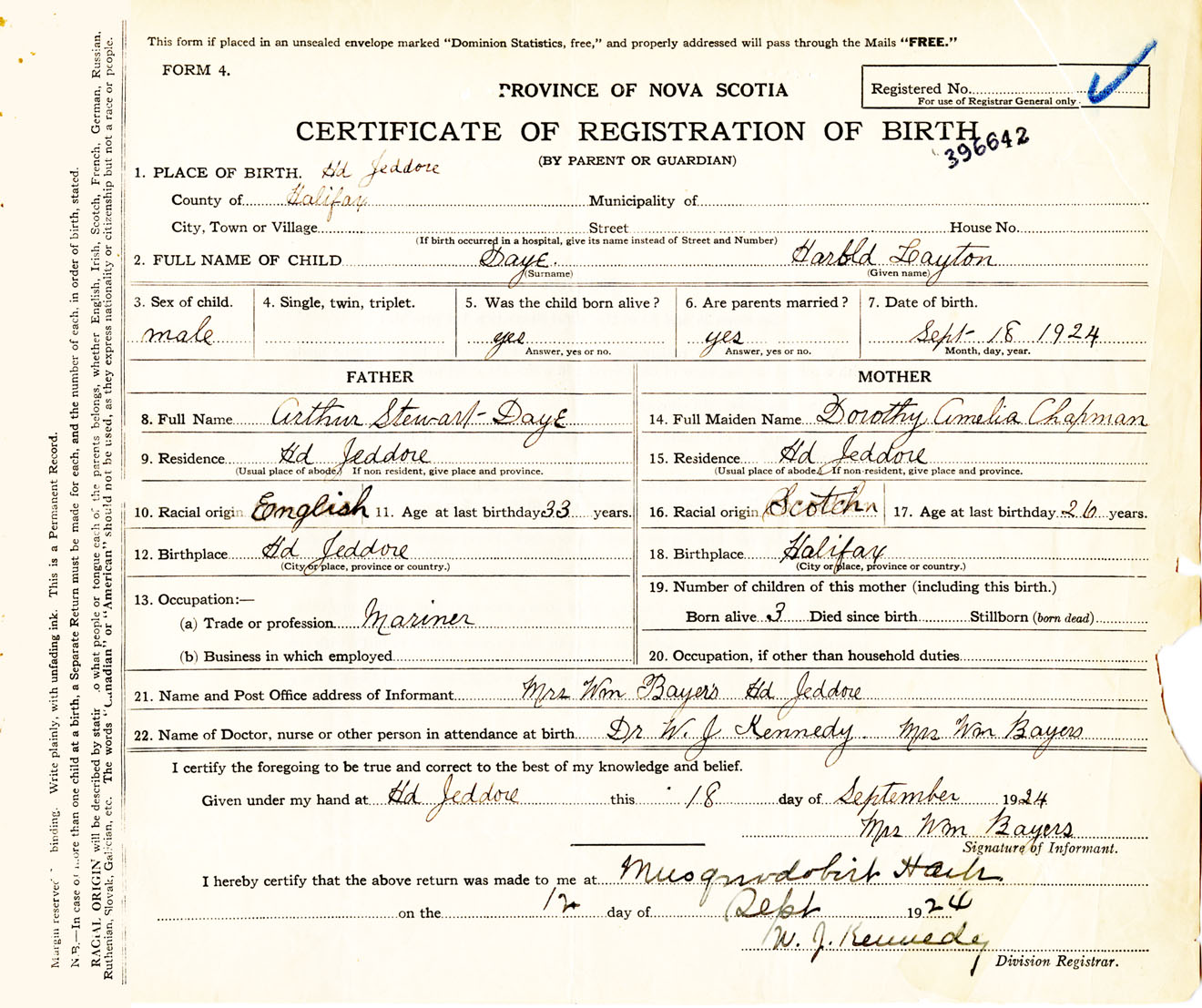 Male Birth Registration: Year: 1924 number: 39600642