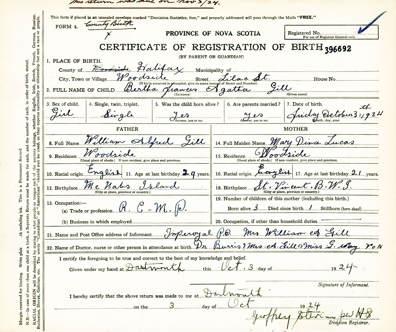 Female Birth Registration: Year: 1924 number: 39600692